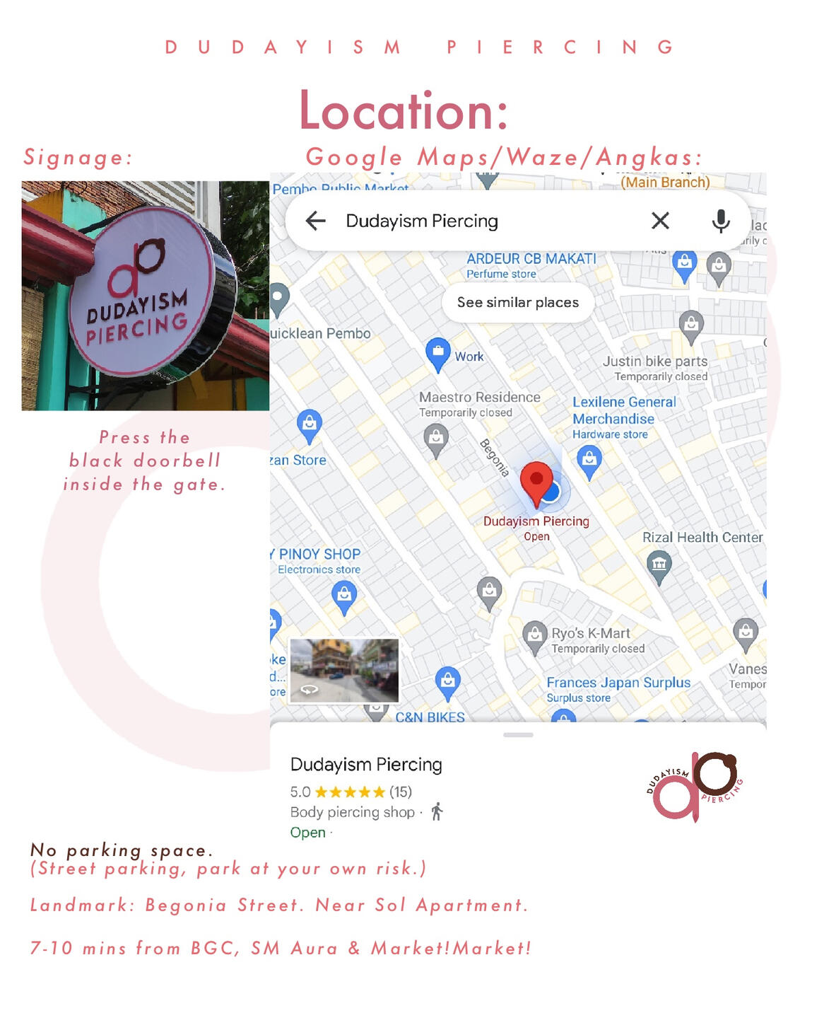 Dudayism Piercing provides superb and hygienic service for ear, facial, and body piercings.
